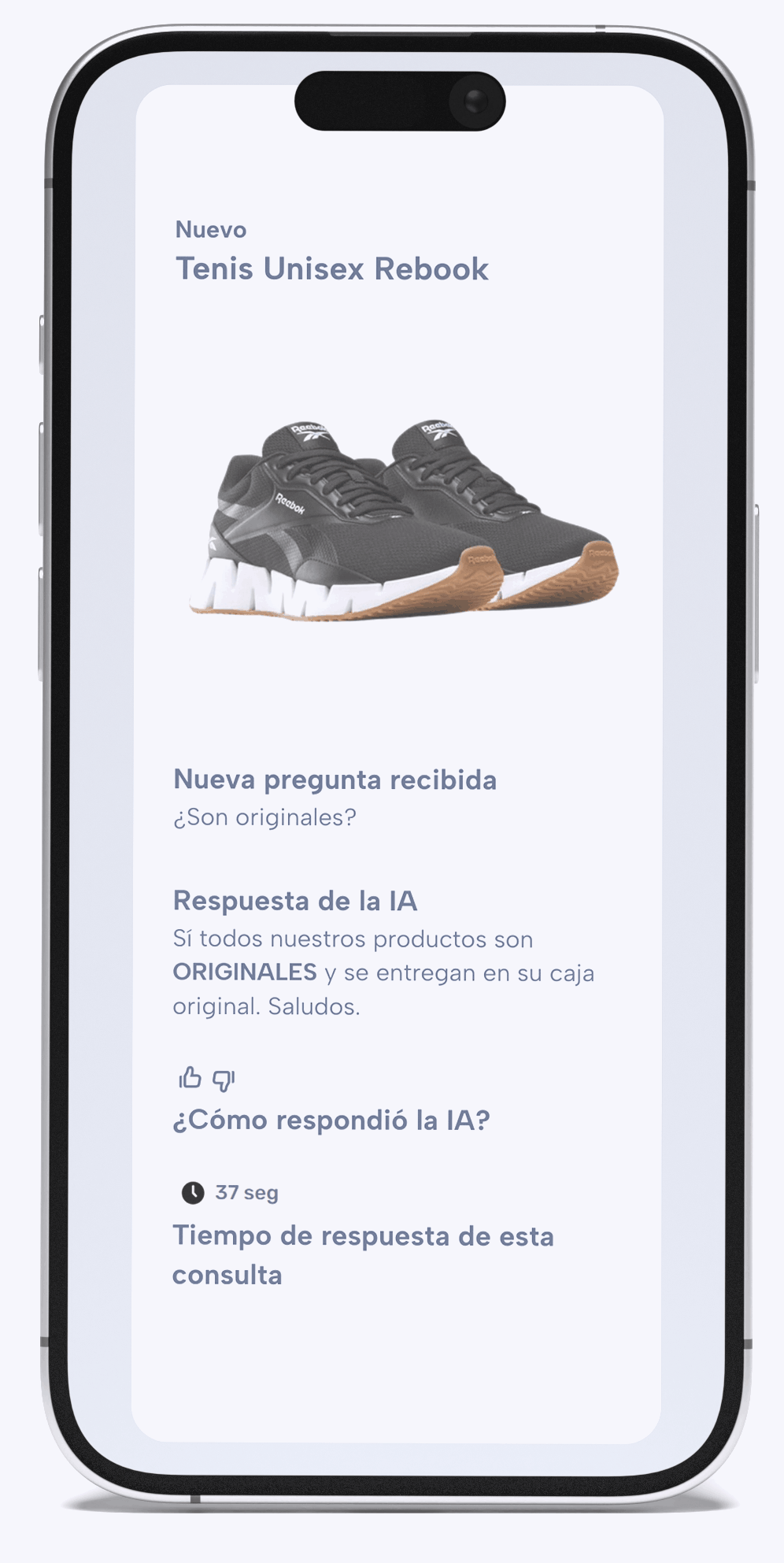 Con cada conversación, la IA se ajusta y mejora, incorporando nuevos aprendizajes a partir de las interacciones reales con los clientes dentro del marketplace. A medida que se utiliza, la IA mejora la precisión de sus respuestas y se adapta progresivamente al comportamiento real de los compradores, entendiendo mejor cómo formulan sus preguntas y qué información esperan recibir.